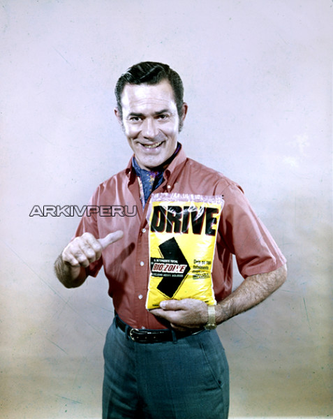 Arriba: Disco "El himno de las madres" (Cortesía Vinilos Peruanos) Abajo: Braulio Castillo en publicidad para detergente "Drive" (1970)