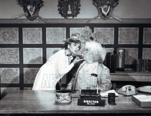 Si bien no era de los mayores en el elenco, Camucha contaba con amplia experiencia. El público la recuerda especialmente por el popular sketch que compartía con Efraín Aguilar, inspirado en los chistes colorados de Jaimito. En la pantalla, Aguilar encarnaba a “Betito”, un alumno travieso enfrentado a una madura profesora que lo desarmaba con su inconfundible sex appeal. El número humorístico derivaba en un juego de dobles sentidos, donde las matemáticas se mezclaban con la anatomía y un “Betito” ya crecido que se mostraba más que dispuesto a “aplicarse”. La secuencia tuvo buena acogida y pronto dio el salto al café-teatro, rebautizado con el título de “Cara… joven”.