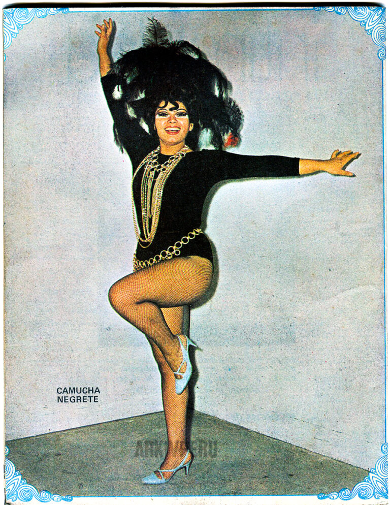 Entrábamos a los años setenta y la imagen de Camucha estaba en definitiva alzada. Continuó con “El Buen Ambiente” (1972), media hora de teleteatro humorístico con Delfina Paredes, Esmeralda Checa, Jorge Montoro, Verónica Graham y Benjamín Ureta, donde Camucha hacía la secuencia de la “secretaria nocturna”. Luego se integró al elenco de “El Tornillo”, exitoso programa cómico que duró ocho años bajo la dirección de Carlos Onetto “Pantuflas”, a quien Camucha consideraba su gran maestro. Fue en este espacio que se popularizó el sketch del modisto francés “Mesié Canesú”, interpretado por Luis La Rocca, uno de los primeros personajes “hojita de té” (amanerado) de la TV cómica. En él, era asistido por “Camiuch”, siempre dispuesta a “mostrar el detalle”, dando ocasión a que luciera sus encantos. Para entonces, Camucha Negrete se había convertido en uno de los rostros más reconocidos de la televisión peruana.