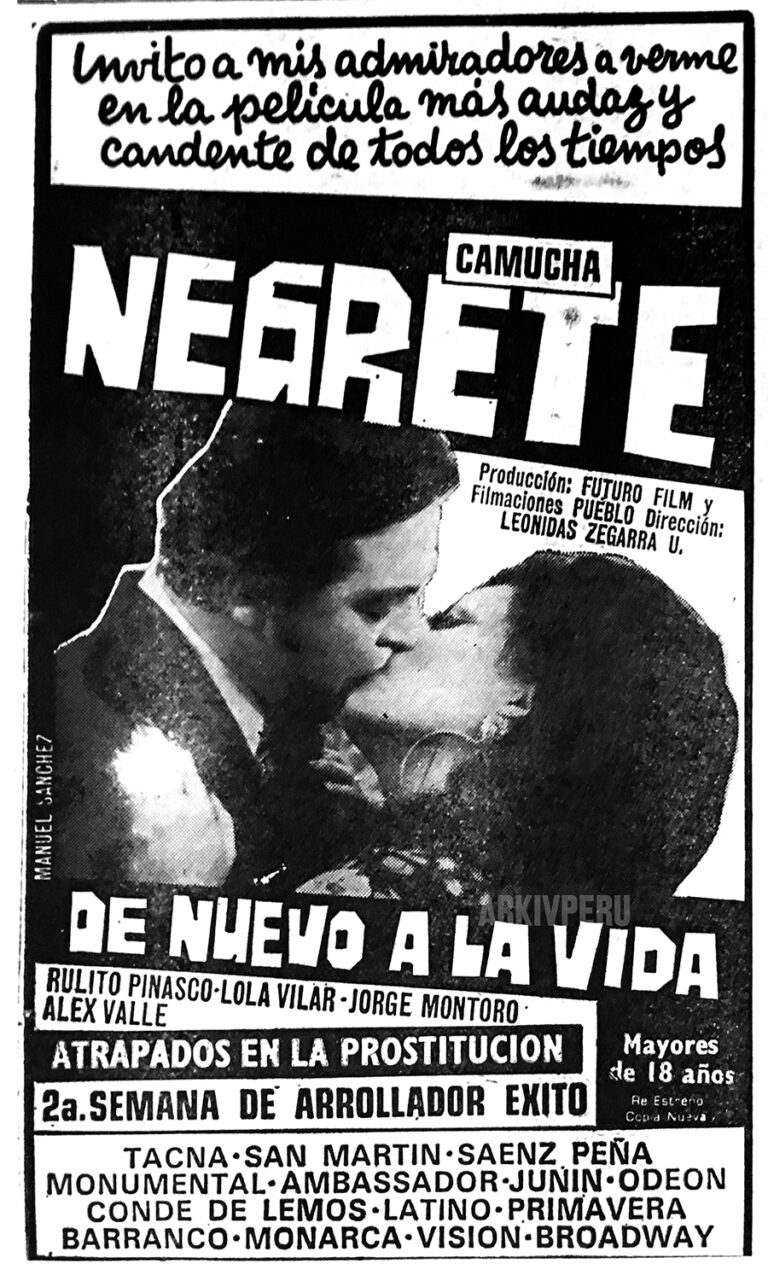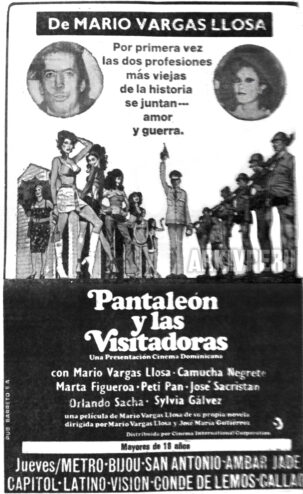 En el caso de “Pantaleón y las Visitadoras”, que fue filmada en Santo Domingo, la cinta no llegó a estrenarse en el Perú debido a la prohibición impuesta por el gobierno militar de entonces. Cuando finalmente se anunció su exhibición en 1981, los avisos publicitarios utilizaron como principal gancho la imagen de Camucha Negrete junto a la de Mario Vargas Llosa.
