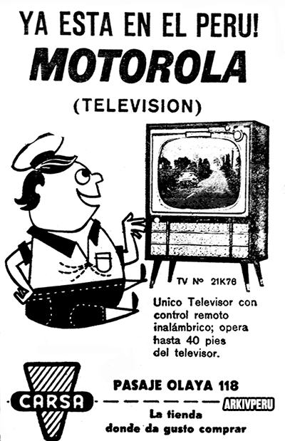 La novedad de la época fue el televisor B/N a control remoto. Zenith fue la primera marca en introducir el primer remote en el mundo (su nombre era “Lazy Bone”). En el Perú hubo contados modelos con esta novedad. El aparato (que costaba solo con las funciones básicas) estaba unido a la televisión por un voluminoso cable. Posteriormente llega la versión inalámbrica, que en el Perú aparece junto con los primeros televisores a color. «A fines de los sesenta comprar un televisor seguía siendo un lujo. Solo la clase media podía acceder a la nueva tecnología. Recién en los setenta la televisión se hace medianamente masiva», indica Ernesto Gutiérrez, gerente de márketing de LG Electronics.