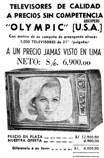 La lucha por conseguir clientes era fuerte entre las firmas competidoras. El precio de un televisor (Zenith, Silvania, Motorola, Andrea, Philco, CBS, RCA, Olympic, Philips o General Electric) de 17 pulgadas que era el tipo más adecuado para una casa standard, podía costar entre ocho y diez mil soles (cerca de mil dólares). Como la inversión era elevada para un bolsillo corriente, las facilidades de pago eran tentadoras. Algunas firmas ofrecían precios y facilidades para grupos de compradores en los centro de trabajo. Así se organizaban sorteos y verdaderos pools de ventas en los que era posible comprar un receptor sin pagar cuota inicial y con abonos hasta de veinte mensualidades.