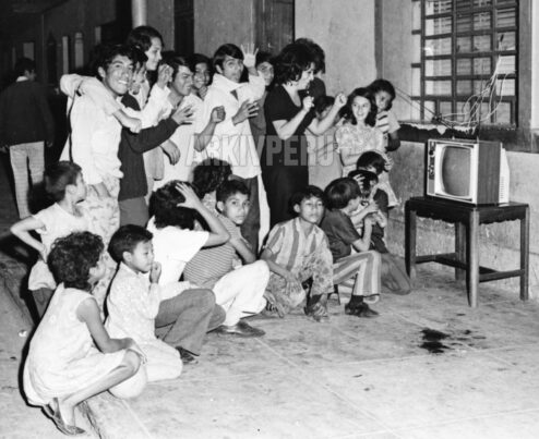 En los barrios populares la gente tenía que esperar a que uno de sus vecinos “más acomodados” comprase un televisor. En muchos hogares, la televisión se convirtió en un negocio: cobraban un sol de oro por un par de horas. Un partido de fútbol era una cosa espectacular, los vecinos se reunían en una sola casa. Para impulsar la adquisición de aparatos, muchos municipios programaron exhibiciones en salas «especiales» instaladas en plazas o parques. Era la época de “El Tornillo”, “Nino” y “Hawaii 5-0”. Estos años marcaron el nacimiento de la primera generación destinada a tener como actividad fundamental la contemplación de la pequeña pantalla.