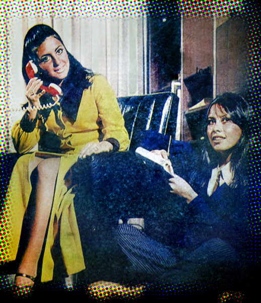 Arriba: Rulito Pinasco y María Julia Fortunic Galindo, Miss Trabajo 1971. Abajo: Concursantes durante rueda de prensa.
